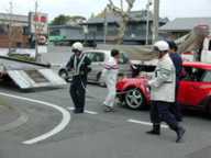 青い車は、ポルシェから遠くのところを回ろうとしたが、すんなりと曲がれなくて、もたついたのかも知れません。(未確認)。