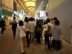 夕方、センター街を歩いていたら、 アーケードの道端に人だかりが…。