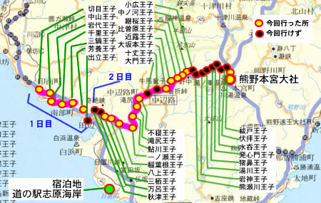 今回の2日間で探索したところこの2日間で探索した熊野古道マップを掲載しておきます。