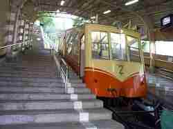 2台の車両が、1本のワイヤーケーブルで結ばれているので、 登りと下りが同時に発車し、ちょうど中間地点ですれ違います。