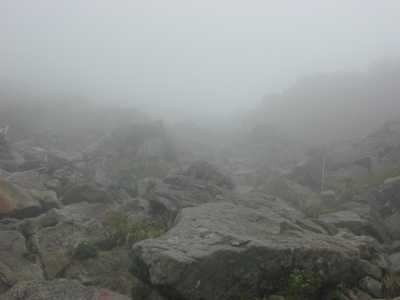 待っていても視界は良くなりそうもありませんでしたので、しばらく霧の風を楽しんで下山します。
