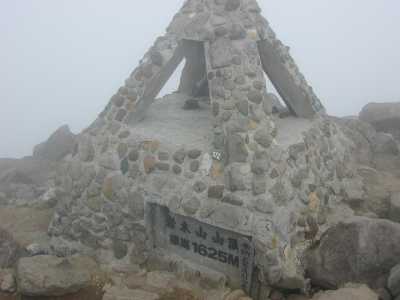 頂上はものすごい霧で、風がメチャクチャ強いです。