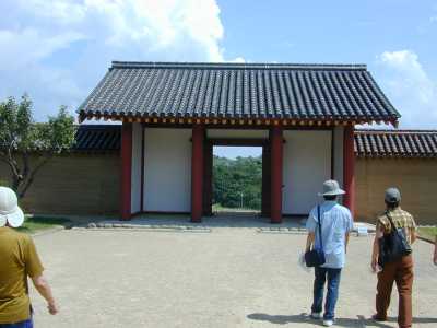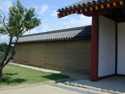 多賀城は周囲は土塀だったのですが、 秋田城では、すごく立派な瓦の付いた建造物、塗り壁でした。