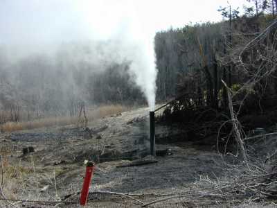 途中、道端の空き地に蒸気が高く吹き上げているところがあって驚いたのですが、 新しい温泉を掘っているのかも知れません。