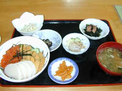 鮎川港に戻って、また、うにいくら丼を食べました。