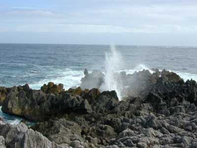 波が打ち寄せたときに、波が岩の隙間に入って、 その勢いで上に向かって潮が吹き上げるのです。
