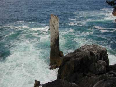 天気が悪くて、今まさに良くなりかけていたので、霧が出るのかな、と思ったのですが、実際は、始終、岩の割れ目の、見えないところで吹き上げている波の細かいしぶきが、辺りを漂っている、というわけでした。